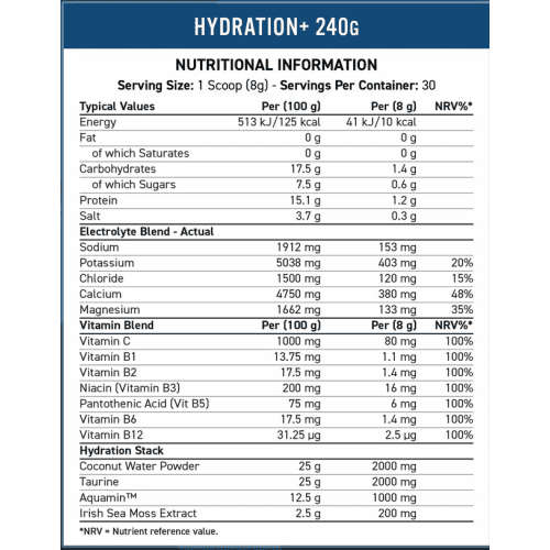 Applied Nutrition Hydration+ Powder je premium dodatak prehrani osmišljen za optimalnu hidrataciju i opskrbu tijela esencijalnim vitaminima i mineralima.