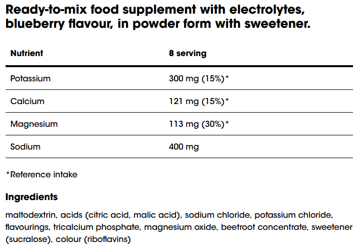 Elektroliti poput natrija, kalija i magnezija ključni su minerali koji imaju vitalnu ulogu u održavanju normalnih tjelesnih funkcija. Ovaj pažljivo razvijen prašak osigurava precizne količine potrebnih minerala kako biste ostali spremni i energični u svakoj fazi treninga.