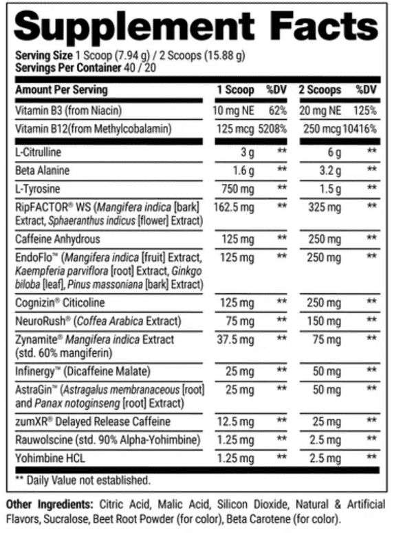 Pomiješati jednu mjericu s 240–360 ml vode i konzumirati 15–30 minuta prije treninga. Napredni korisnici mogu uzeti do dvije mjerice s 480–720 ml vode. Ne preporučuje se prekoračivanje dvije mjerice dnevno.